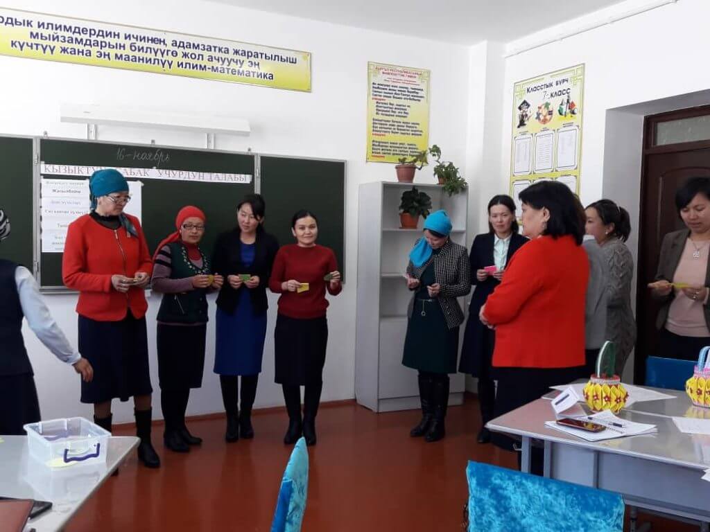 Токтомуш кызы Гуланда «Окуучулардын окуу көндүмдөрүн калыптандыруу» деген темада семинар- сабак өтүүдө