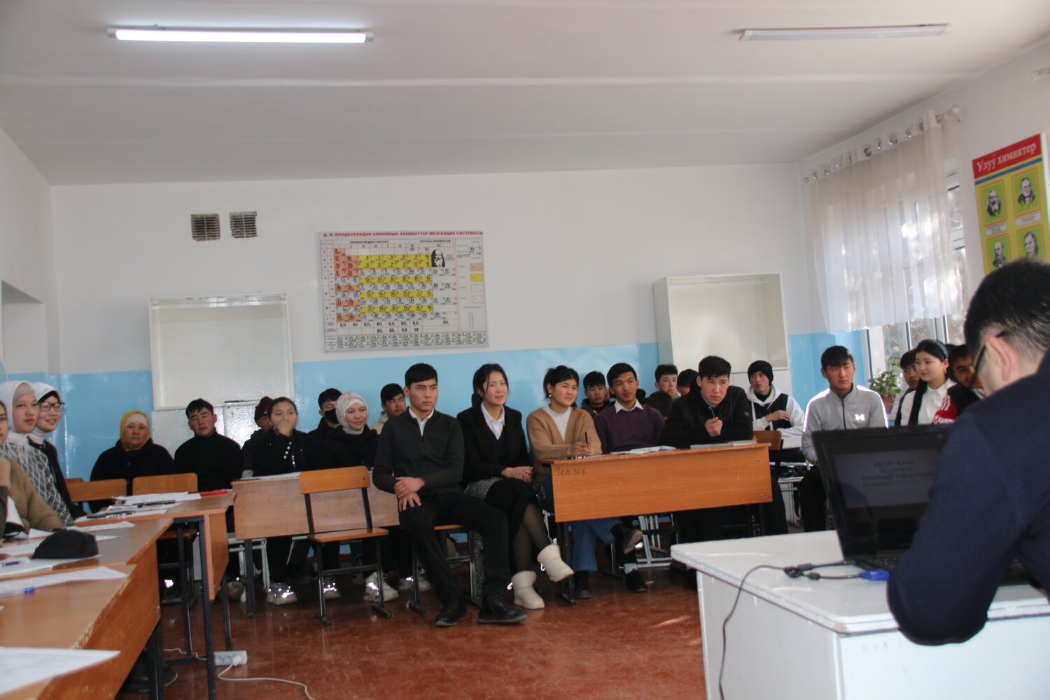 18-февралда Ноокат районундагы Ж. Нышанов атындагы орто мектебинин базасында 11-класстын окуучуларына туура багыт берүү, аны менен кошо эле кесип тандоодогу көйгөйлөр туурасында мектеп бүтүрүүчүлөрүнүн оюн билүүнү колго алып, аларга “Кесип тандоо эмне үчүн маанилүү?” аттуу семинар болуп өттү.
