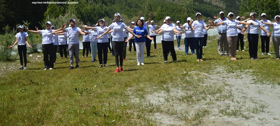 “Окуучу күткөн мугалим” II республикалык жайкы лагеринин катышуучулары күнүгө таң эрте көлдүн жээгинде флешмобго катышып, аз болсо дагы ден соолуктарын чыңдап алышты.