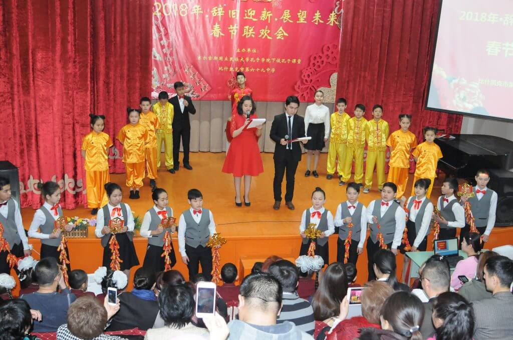 Иш-чара алгач 9-февралда №2 мектепте, андан кийин 10-февралда №69 мектепте өтүп, окуучулар кытай тилинде ар түрдүү оюн-зоокторду тартуулашып, жомокторду сахналаштырышты. Эки мектепте тең кытай тилин окутуу он жылдан ашуун убактан бери жүргүзүлүп келет. №2 мектепте 2011-жылы Конфуций классы ачылып, зарыл эмеректер, телевизор, проектор, окуу куралдары менен жабдылган. Сабакты жергиликтүү тажрыйбалуу мугалимдерден сырткары Кытайдан келген волонтерлор өтүшөт. Учурда 3-класстан баштап 11-класска чейин жалпы 300 окуучу кытай тилин өздөштүрүүдө.