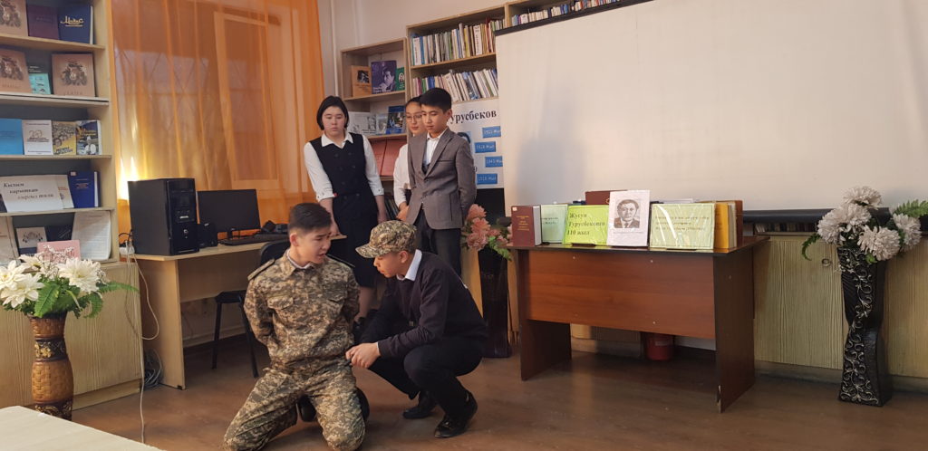 Андан соң келген меймандар №68 мектеп-гимназиянын кыргыз тили жана адабияты мугалими Айзада Нургазиеванын окуучулары Жусуптун чыгармаларынын негизинде койгон сценкаларга күбө болушуп, акындын “Ук жер, жүзү”, “Эне” ж.б. ырларын окуучулардын көркөм окуусунда угушту.