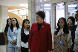 – Билимдүү жаштарсыз Кыргызстандын келечеги жок. Бул жерде бир жарым миллион баланын арасынан 348 бала тандалып келип ийгиликтин сересинде отурасыздар. Бул чек болбосун. Ийгиликтүү адам менен ийгиликсиз адамдын ортосунда бир гана айырма бар, ал – эрк. Сиздердин алдыңарда океандай мүмкүнчүлүк бар. Билимиңер менен биз кыялданган кыялдарга силер жетет деп ишенебиз, – деди министр.