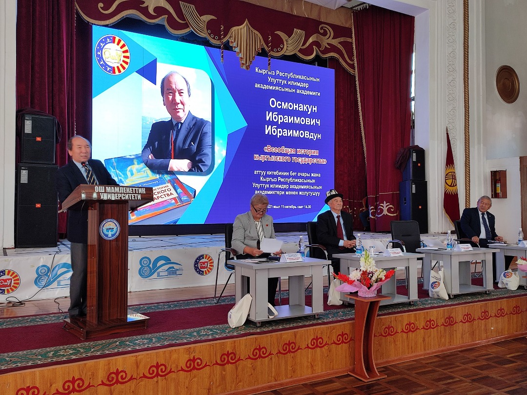 11-октябрда ОшМУда Кыргыз Республикасынын Улуттук илимдер академиясынын академиги Осмонакун Ибраимовдун “Кыргыз мамлекетинин байыркы доордон бүгүнкү күнгө чейинки жалпы тарыхы” аталышындагы китебинин бет ачары өттү.