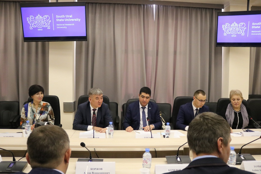 Түштүк-Урал мамлекеттик университетинин жетекчилери менен билим берүү программасына байланыштуу алдыдагы милдеттер, окуу пландагы өзгөчөлүктөр, финансылык академиялык мобилдүүлүк, консорциум түзүп, эл аралык долбоорлорго өтүнмөлөрдү берүү, илимий-практикалык конференцияларды уюштуруу маселелери талкууланды.