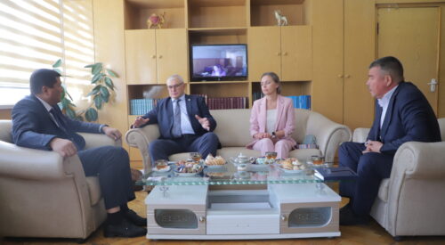 Ош технологиялык университетине Россия Федерециясындагы Нижневартовск мамлекеттик университетинин окуу ишмердүүлүгү боюнча проректору Г.В.Мальгин жетектеген делегация келип, окуу жайдын ректору Жанболот Турсунбаев менен жолугушту.