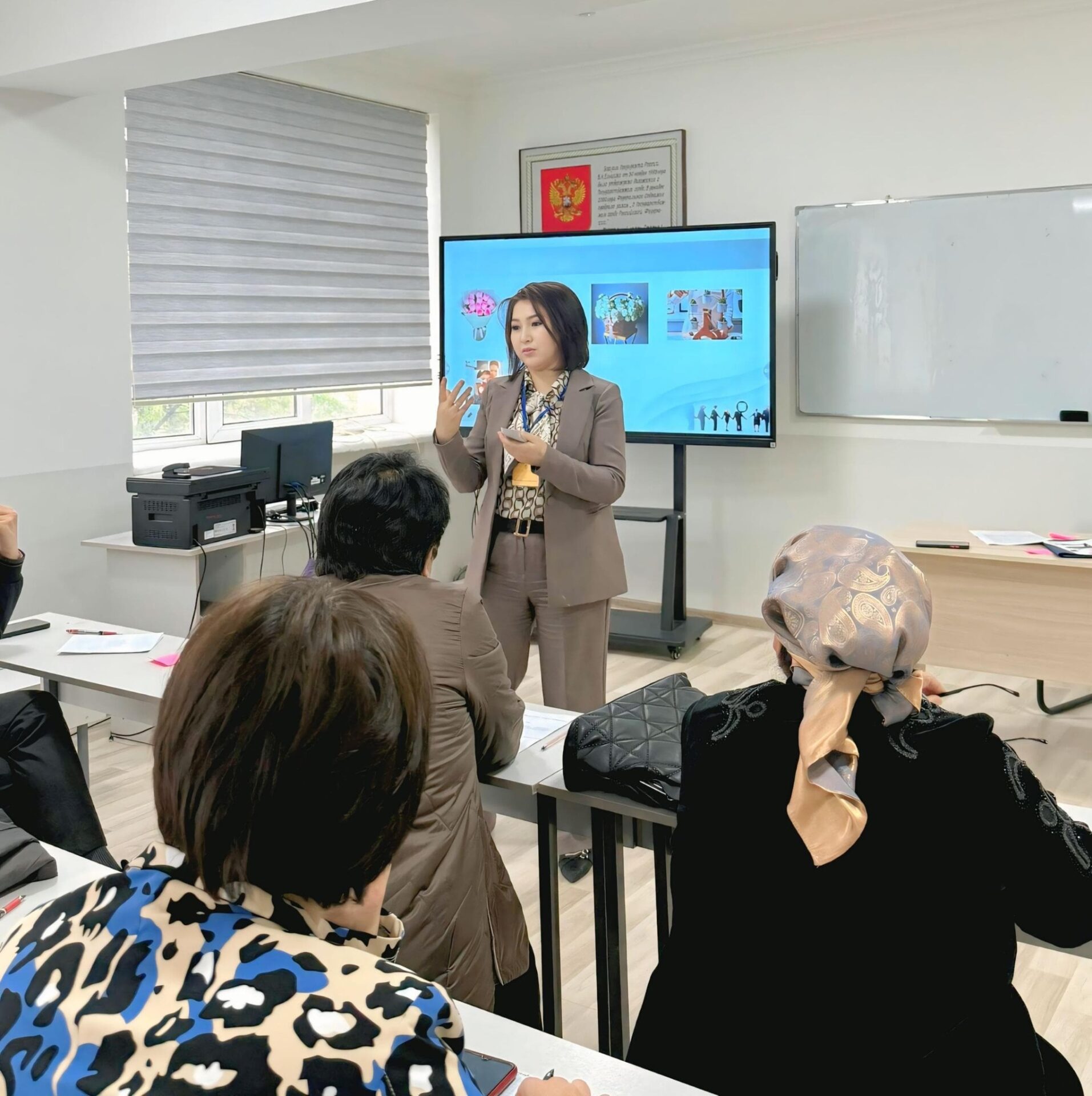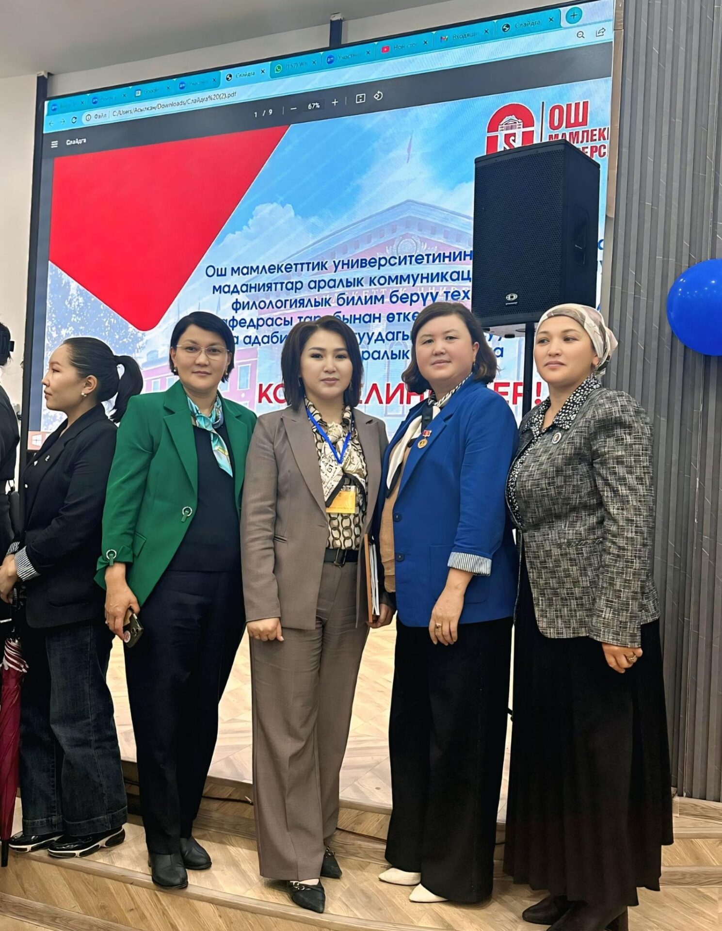 Ал Ош мамлекеттик университетинин Филология жана маданияттар аралык коммуникация институтунун филологиялык билим берүү технологиялары кафедрасы уюштурган “Кыргыз тили жана адабиятын окутууда актуалдуу маселелер” аттуу эл аралык педагогикалык окууга катышып, “Окутуунун интерактивдүү усулдары, 4К көндүмүн калыптандыруу” деген темада мугалимдерге семинар өтүп, тажрыйбасы менен бөлүшүп, ыраазычылык катка ээ болду.