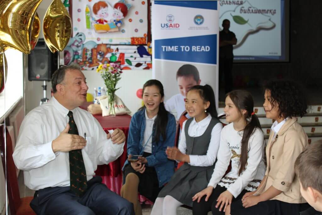 Окуучулар Мамлекеттик гимнди ырдашат |