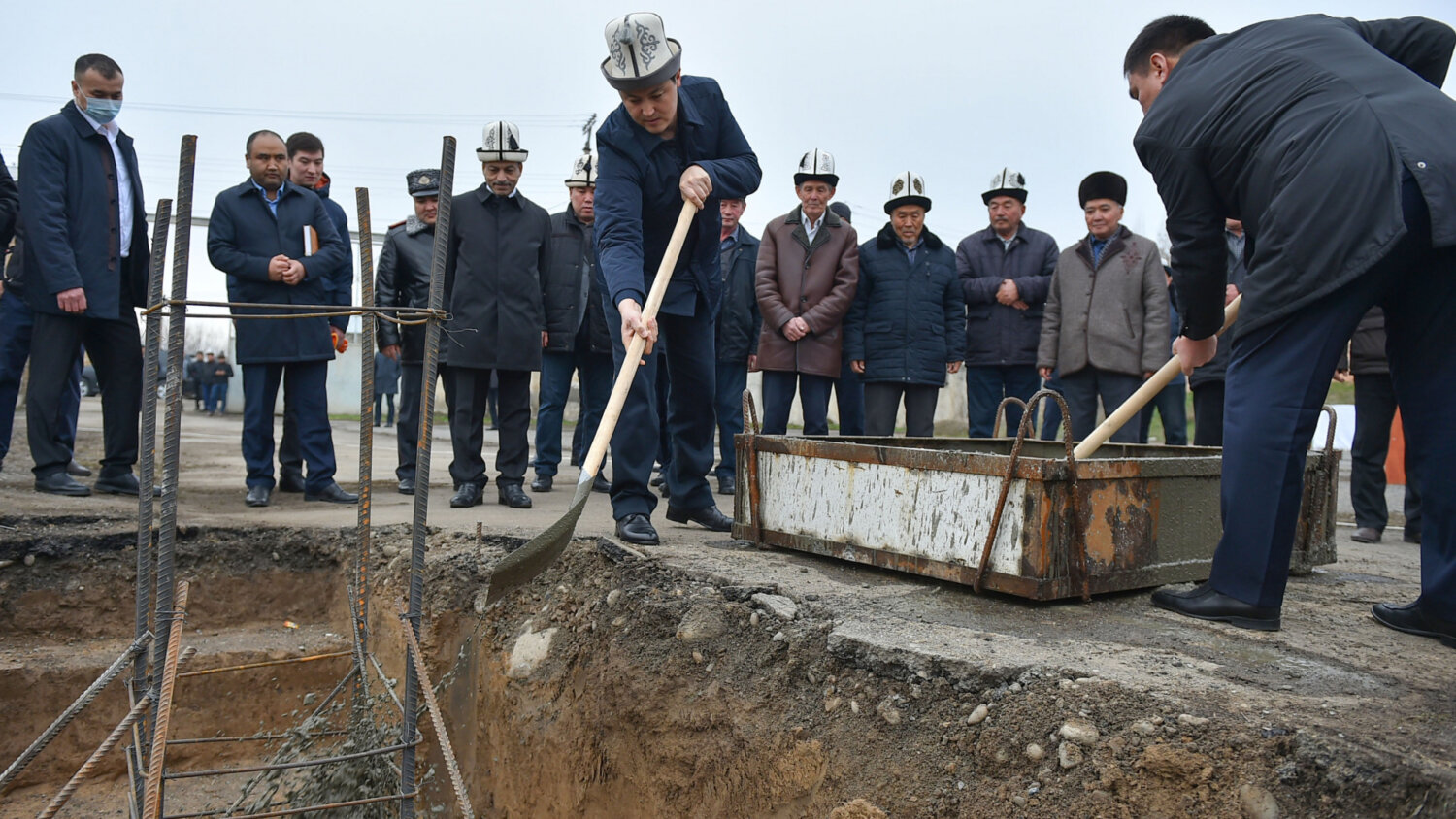 Премьер-министр Улукбек Марипов Ош шаарынын курамына кирген Кеңеш айылындагы билим берүү борборунун курулушуна капсула салууга катышты.