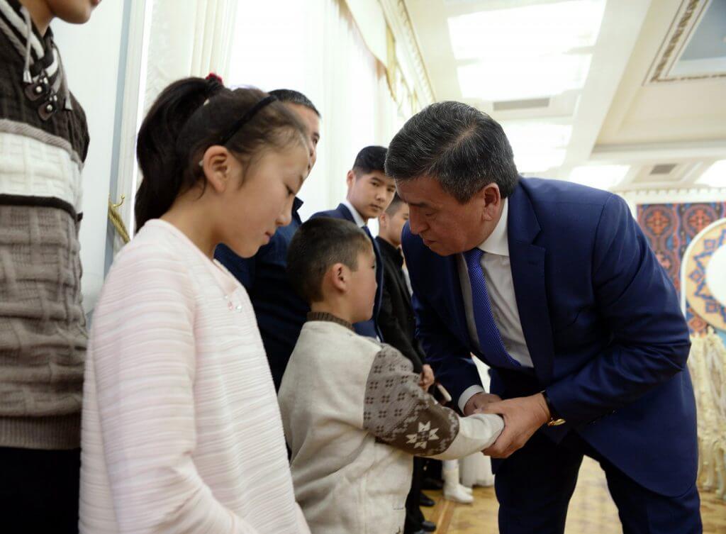 Президент Сооронбай Жээнбеков 2017-жылдын 16-январында Чүй областынын Дача-Су айылында “Боинг-747” жүк ташуучу учактын кулашынан улам туугандарын жана жакындарын жоготкон балдар менен жолугушту.