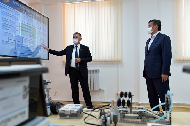 Мамлекет башчы Сооронбай Жээнбеков Ош облусуна болгон иш сапарында Ош мамлекеттик университетине дагы барып, жогорку билим берүү тармагын санариптештирүү боюнча жасалып жаткан иштер менен таанышты.