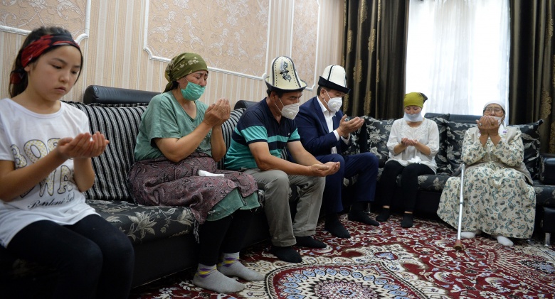 Мамлекет башчысы Адинайдын ата-энесине, туугандары менен жакындарына терең кайгыруу менен көңүл айтып, анын атына багыштап куран окуду.