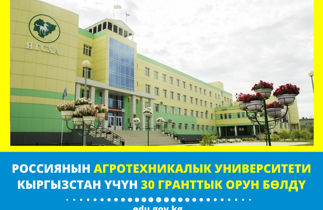 РОССИЯНЫН АГРОТЕХНИКАЛЫК УНИВЕРСИТЕТИ КЫРГЫЗСТАН ҮЧҮН 30 ГРАНТТЫК ОРУН БӨЛДҮ