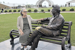 — Мен адегенде жол салгандыгы жөнүндө айтайын. Эми ал киши өзү жол салбаса дагы биринчи жолду Казакстандын жетекчиси Кунаев салып берген. Шекерде асфальт жок болчу. Ошол киши Жамбылдан биздин Шекерге чейинки жолду бүтүрүп, агамдын 50 жашына белек кылган. Муну көбү билбейт. Айылдагы жанагы жаңы клубду, эми азыр эскирип калдыго, ошол клубду дагы Токтогул Бабанов экөө биригип салган. Олтургучтарынын баарын Чыңгыз өзү алып барып коюп берген. Ал клубдун кино көрсөтө турган, конференция өтө турган татынакай залы бар. Экинчи кабатында музей жана китепкана жайгашкан. Китептеринин санын билчү элем, абдан чоң китепкана! Дагы бир фойеси бар, ал жерде биздин айылдагы өмүрү өрнөктүү кишилердин сүрөттөрү илинип турчу эле. Мен да көптөн бери бара элекмин. Бирок эми токсон жылдыкка карата маданият үйүн жергиликтүү чоңдор кайра жаңыртат болушу керек. Ал эми экинчи өмүрү жөнүндө сөз кылсак жаңы жазылган китептер, эскерүүлөр, ал кишиге арналган борбордогу эстелик, көрүстөнүнө коюлган эстелик – мунун баары агамдын экинчи өмүрү. Ал жерге барган киши мектеп салган жок эле же жол салган жок эле деп таарынып кетпейт, тескерисинче терең ойго түшүп кетет деп ойлойм.
