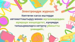 - Электрондук журналдагы автоматташтыруу функциялары (баалар киргизүү, катышууну белгилөө) жана электрондук күндөлүктөгү пландаштыруу функциялары биригип, мугалимдердин күнүмдүк иштерин жеңилдетет.