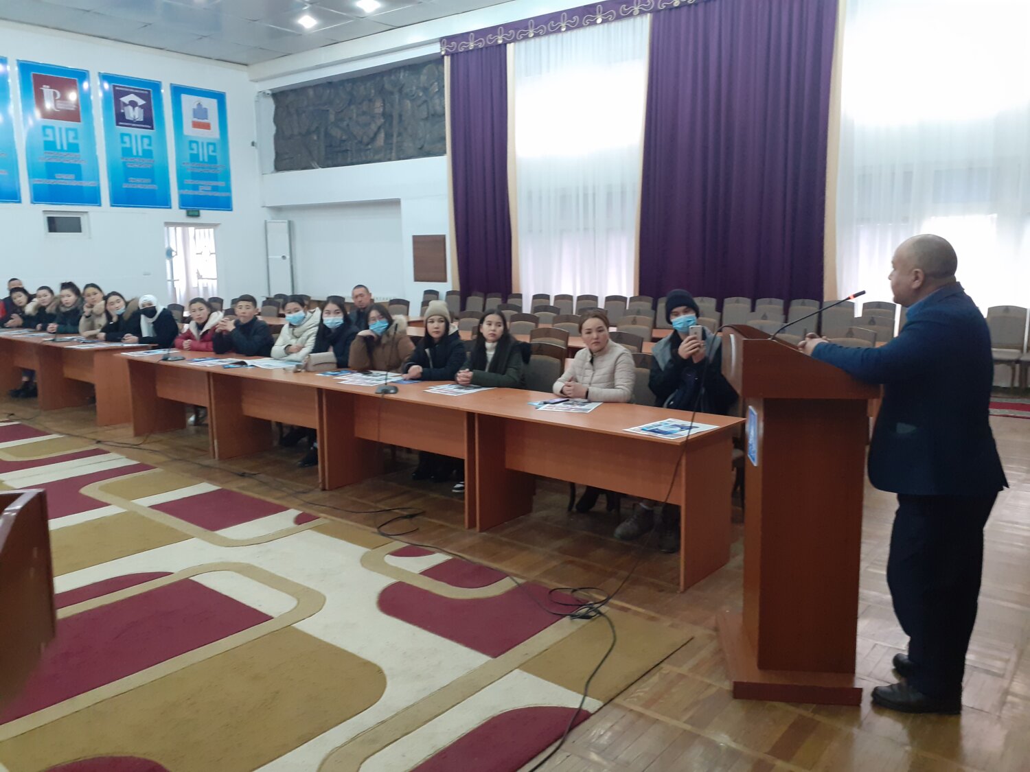 Мейманга келген окуучуларга университет тууралуу видеоролик тартууланып, Кабыл алуу комиссиясынын жооптуу катчысы Т.Болотов кеңири маалымат берип, окуучулардын суроолоруна жооп берди. Окуучуларды университетке Жаңы маалыматттык технологиялар институтунун ИСТ адистигинин 2006-жылдагы бүтүрүүчүсү Чоро уулу Нурдин демилгелеп, алып келди. Нурдин 2011-жылдан тартып бул мектепте информатика, математика мугалими болуп эмгектенип келет. Анын окуучуларынын арасында республикалык олимпиадаларда информатикадан 1-орунду, математикадан 2-орунду ээлегендери да бар.