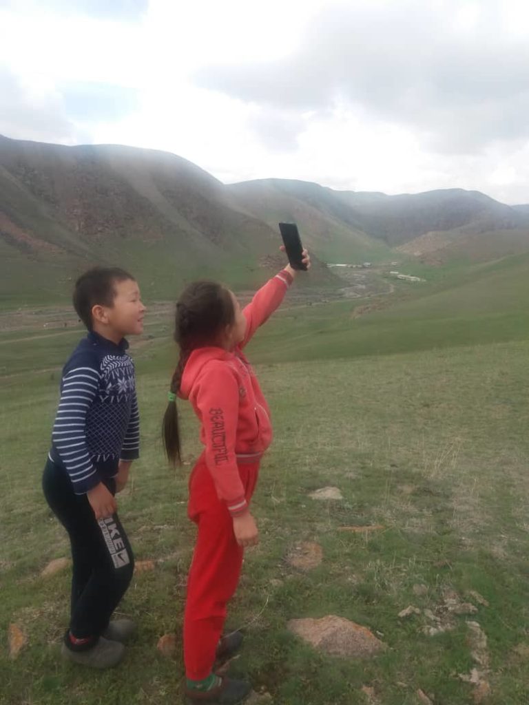 Кемин районундагы Кичи-Кемин айылынан жогору тоо этектериндеги мал кашарларда жашаган окуучулар мугалимдери менен кайтарым байланышты өздөрү атап алган «Билайн чокусуна» чыгып, түзүп жатышат.