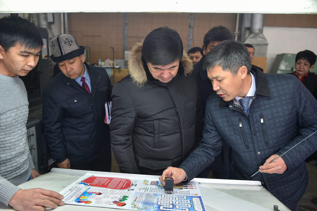 Өкмөт башчы ошондой эле атайын мамлекеттик документтерди чыгаруу боюнча толук технологиялык циклда иштеген офсет жана мукабалоо цехинин иши менен таанышты.