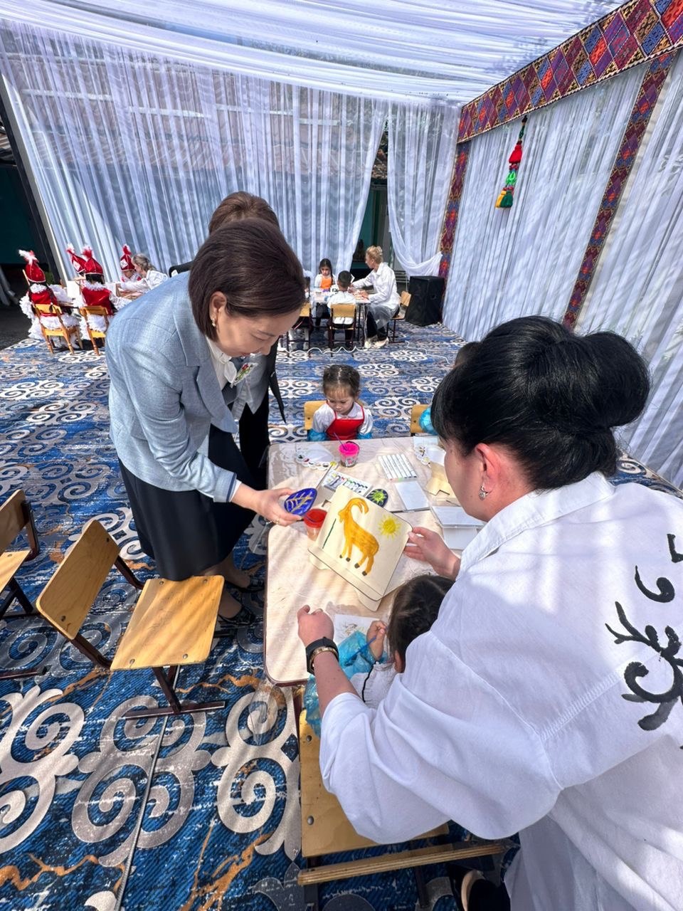 Маданий программа өзгөчө көркөм номерлер менен коштолду. Балдардын аткаруусунда Манас эпосунан үзүндүлөр жаңырып, көрүүчүлөргө улуттук дух тартууланды. Ошондой эле бала бакчанын ишмердүүлүгүн чагылдырган слайд-шоу көрсөтүлүп, улуттук аспаптар оркестринин күүлөрү иш-чарага өзгөчө шаң берди.