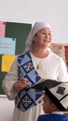Нурсита Асанбековна 26 жылдык педагогикалык иш-тажрыйбасы менен бөлүшүп, «Чакан да болсо көлөмү, кыргыздын сонун өнөрү» деген темада ачык сабак өтүп берди.
