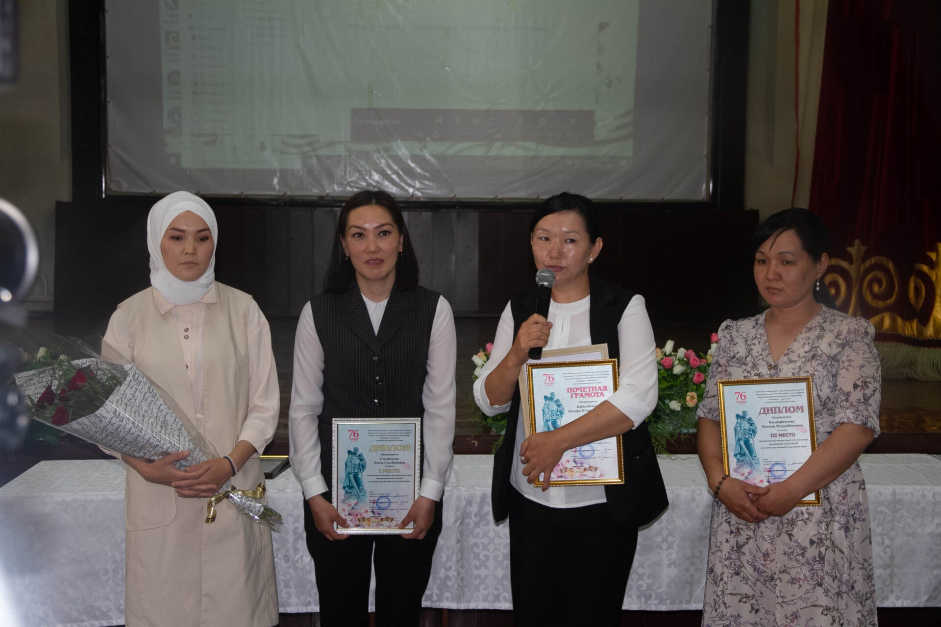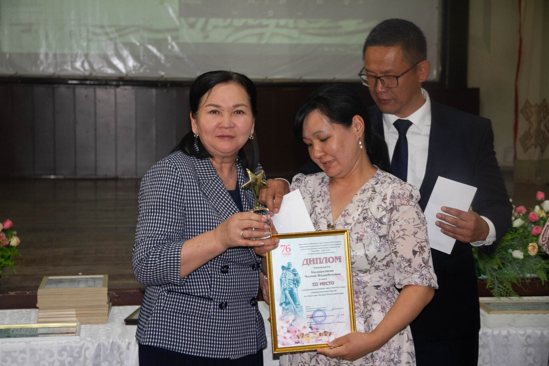 И.Арабаев атындагы Кыргыз мамлекеттик университетинде Э.Маанаев атындагы тарых жана социалдык укуктук билим берүү факультети менен “Евразийцы-новая волна” фонду биргеликте Улуу жеңиштин 76 жылдыгына карата өткөргөн тарыхчы мугалимдердин республикалык видео-сабактар сынагынын жеңүүчүлөрүн сыйлоо аземи болуп өттү.