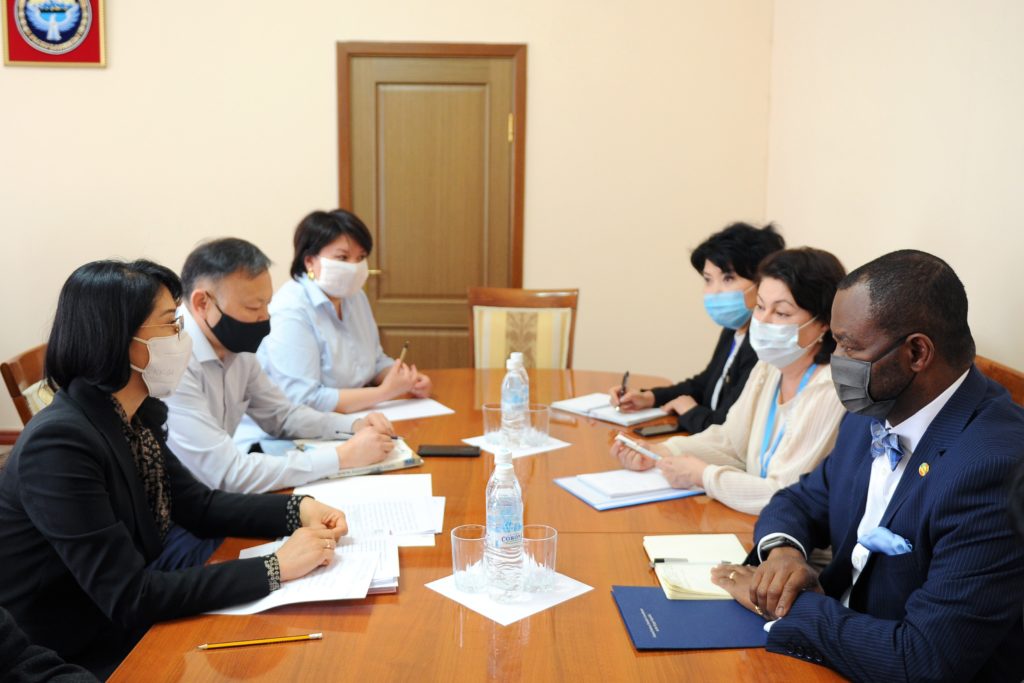 Кыргыз Республикасынын вице-премьер-министри Аида Исмаилова БУУ тутумунун Туруктуу координатору Озонниа Ожиело жана Дүйнөлүк саламаттык сактоо уюмунун Кыргыз Республикасындагы өкүлү Назира Артыкова менен эл аралык уюмдардын демлгеси боюнча жолугушту.