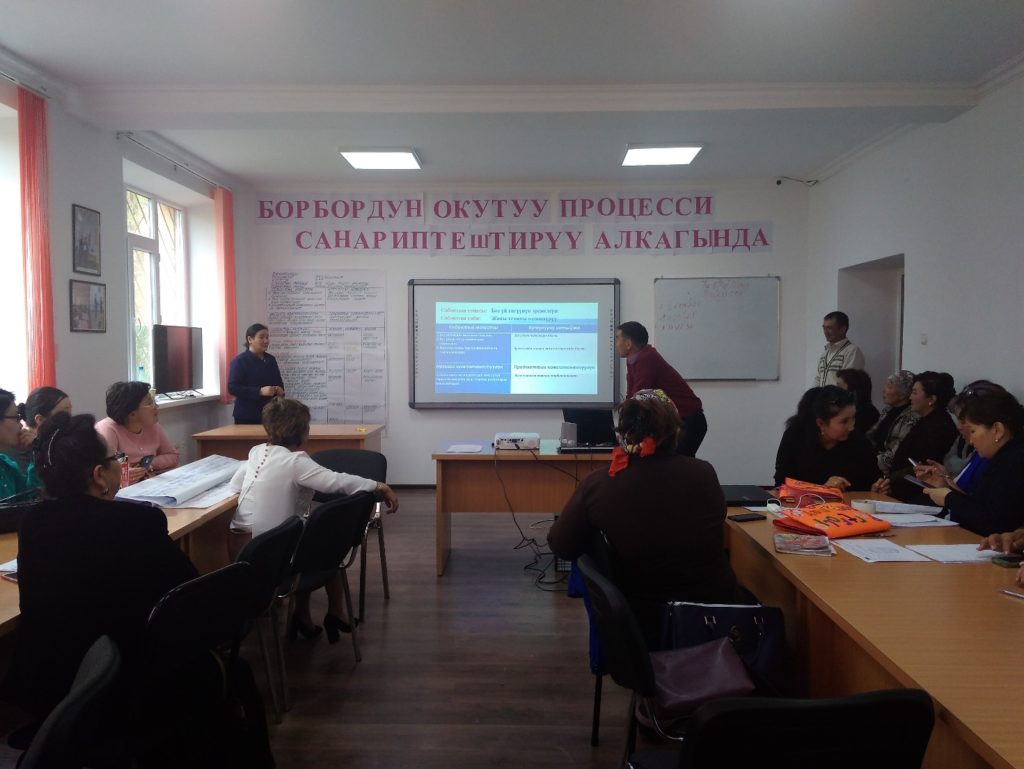 Алар: башталгыч класстын мугалими жана ОББ — Зуура Эркулова, башталгыч класстын мугалими — Биримбаева Элмира, дене тарбия мугалими — Турапбаев Мирбек, ж.о.э орус тили жана орус адабияты мугалими — Молдоева Айнура. Сабак онлайн түрүндө өткөрүлүп, мугалимдер интернет тармагын кеңири колдонууга мүмкүнчүлүк алышты.