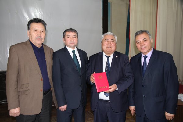 Кечеде алгач университеттин ректору Т.Абдырахманов сүйлөп, акындын ѳмүр жолуна, чыгармачылыгына, илимий-публицистикалык макалаларына кеңири токтолуп, сөзүнүн акырында КМУнун Окумуштуулар кеңешинин чечиминин негизинде Ж.Саалаевге “КМУнун ардактуу профессору» наамын тапшырды.