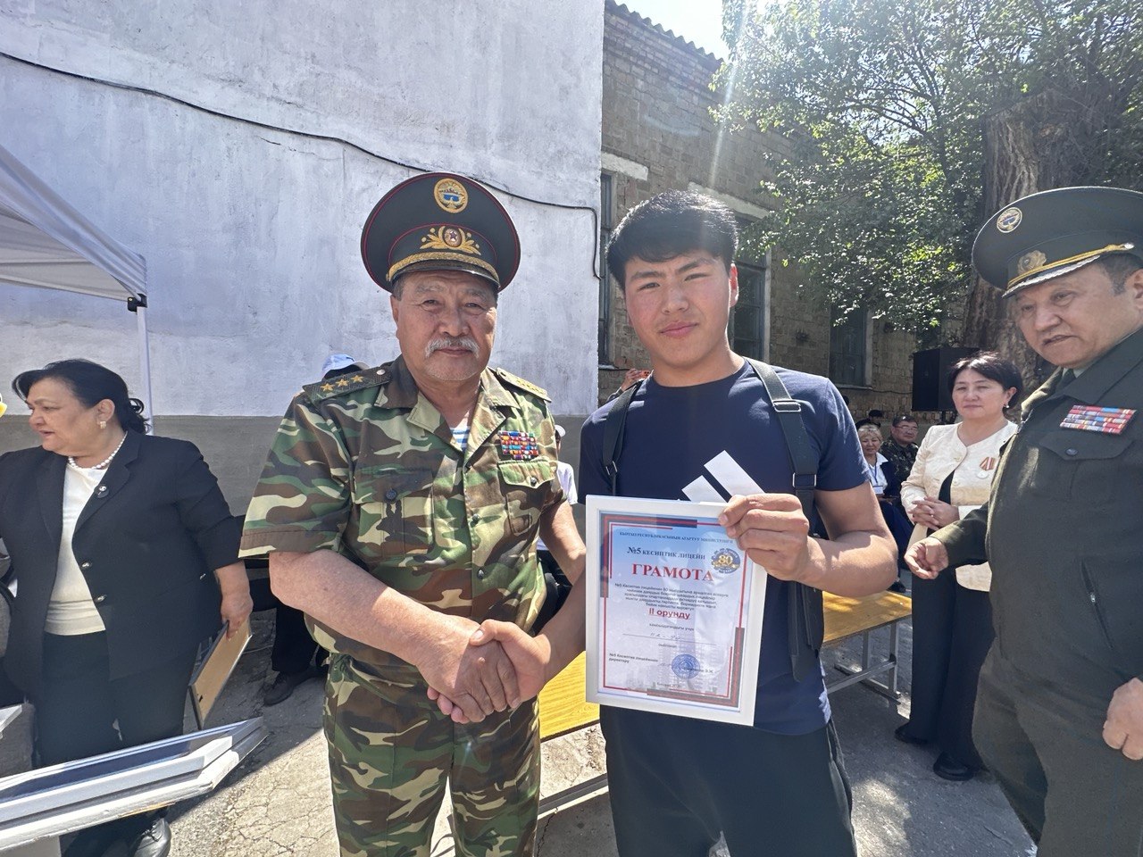 №5 лицейдин директору Элеонора Ишекеева аскерге чейинки даярдык боюнча конкурс жаштардын күчүн, чыдамкайлыгын, тартибин жана мекенчилдигин сынай турган чоң аянтча экендигин айтып, бул жерде жөн гана мелдешпестен, биримдикти, достукту, жоопкерчиликти жана чыныгы жарандык сапаттарды көрсөтөрүн белгиледи.