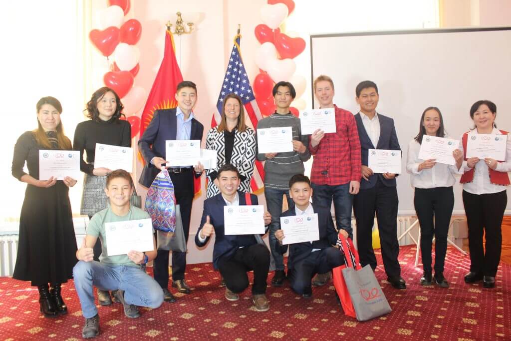 Ошентип, бул күнкү сыйлык тапшыруу аземи Билим берүү жана илим министрлиги тарабынан жарыяланган англис тили жумалыгынын алкагында 12-февралдан 17-февралга чейин өтүүчү иш-чаралардын жыйынтыгы болду. Айта кетсек, аталган жумалыктын алкагында республикабыздын мектептеринде «Англис тили – эл аралык баарлашуу тили» аттуу темада Америка ыр сынактары, викториналар, дебаттар, дубал гезиттер конкурстары жана башка көптөгөн интерактивдүү иш-чаралар өткөрүлүп, аларды уюштурууга АКШ элчилигинин TEA жана FLEX алмашуу программаларынын бүтүрүүчүлөрү активдүү катышууда.