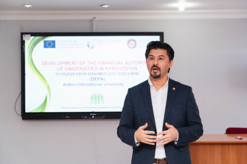 “Ала-Тоо” Эл аралык университети (АЭУ) Кыргызстандын жогорку билим берүү мекемелеринин каржылык көз карандысыздыгын жана туруктуулугун күчөтүүгө багытталган ERASMUS+ долбоору “Кыргызстандын университеттеринин каржылык автономиясын өнүктүрүү” (DEFA) боюнча маанилүү демилгеге активдүү катышууда. Долбоор 2022-жылдын 1-декабрында башталган жана университеттерди эффективдүү каржылык башкаруу боюнча билим, куралдар жана стратегиялар менен камсыздоо максатын койгон. Бул, өз кезегинде, жогорку билим берүү мекемелерине коомдук жана рыноктук талаптарга жооп берүү мүмкүнчүлүгүн берет.