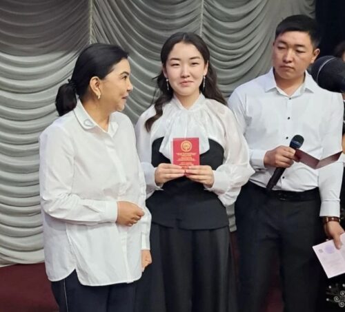 “Алтын сертификатка” ээ болгондордун бири Ысык-Көл облусунун Каракол шаарындагы №11 орто мектепти кызыл аттестат менен бүтүргөн Касиет Догдурбаева Бишкектеги Борбордук Азия Эл аралык Университетинин программалык инженерия бөлүмүнө тапшырып, сынактан өтүп, окуу жайга кабыл алынды.