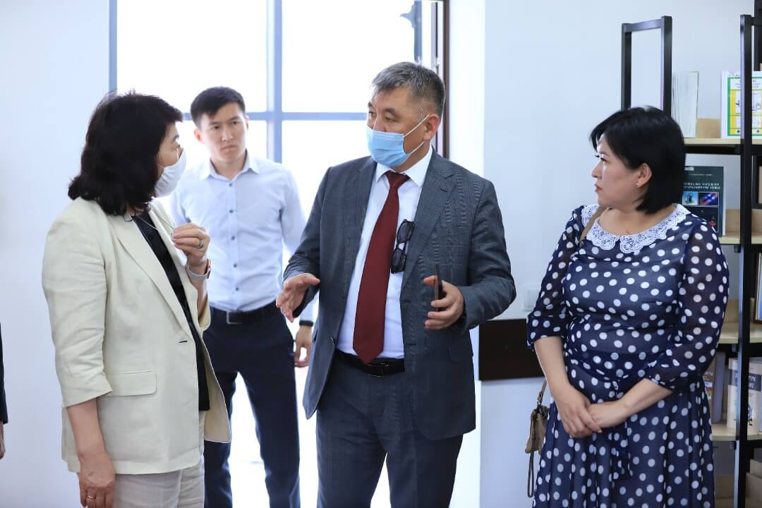 Мындан сырткары окуу жайдын Ак-Буура кампусунда жайгашкан медициналык клиникасындагы билим берүүгө түзүлгөн шарттар менен таанышты.