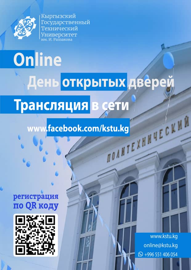 13 марта в КГТУ им. И. Раззакова прошел День открытых дверей для абитуриентов и их родителей в онлайн-формате посредством трансляции мероприятия на странице www.facebook.com/kstu.kg.
