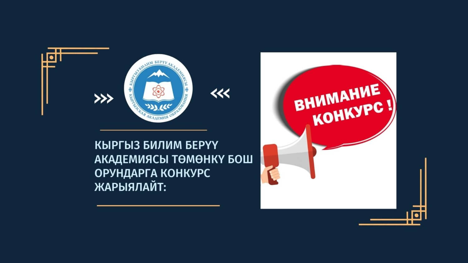 КЫРГЫЗ БИЛИМ БЕРҮҮ АКАДЕМИЯСЫ ТӨМӨНКҮ БОШ ОРУНДАРГА КОНКУРС ЖАРЫЯЛАЙТ