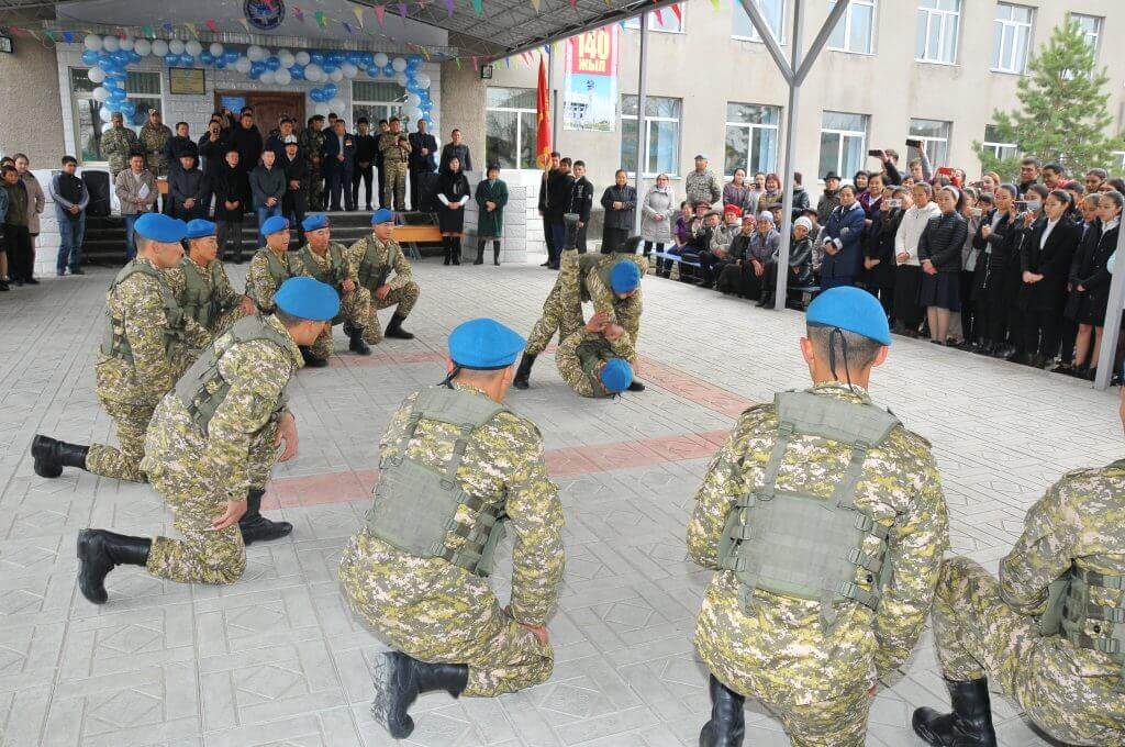 — Учащиеся 10 -11 классов, — обращается учитель – по ДПМ полковник запаса Мырзабаев Таалайбек Кагазбекович, поглядывая на ребят, с которыми проводит занятия по допризывной подготовке, обещает, — через полгода вы тоже достигните таких же результатов и будете маршировать не хуже.