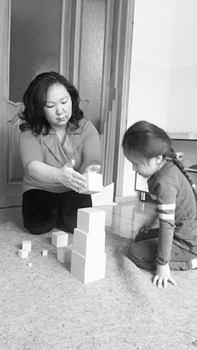 — Монтессори усулунун негизги идеясы – баланын жетилүүсүнө атайын даярдалган чөйрө аркылуу дем берүү. “Чоӊдор балага жардам беришпейт, себеби алар өзүлөрү баланын ичинде эмне кайнап жатканын билишпейт. Ошондуктан бала өзүн-өзү жаратып жаткан сыйкырдуу күчтү чоӊдор байкашпайт”- деп М.Монтессори “Балдар башкача болот” деген китебинде айткан. Эгерде балага жардам берилбесе, ага атайын чөйрө камсыз кылбаса, баланын рухий дүйнөсү коркунучта болот. Тагдырдын түрдүү кырдаалында калган бала чыныгы турмуштан четтеп калат. Андыктан педагогдун иши: баланын бул чөйрөдө ишмердигин өзү каалаган жолу менен жүргүзүшүнө, ички чыгармачыл дареметин ачышына жардам берүү, — дейт Ч.Термечикова.