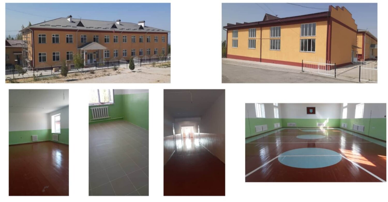 - По средней школе имени Ходжаева в селе Ак-Сай, — завершен капитальный ремонт, ведутся строительно-монтажные работы по устройству ограждения;