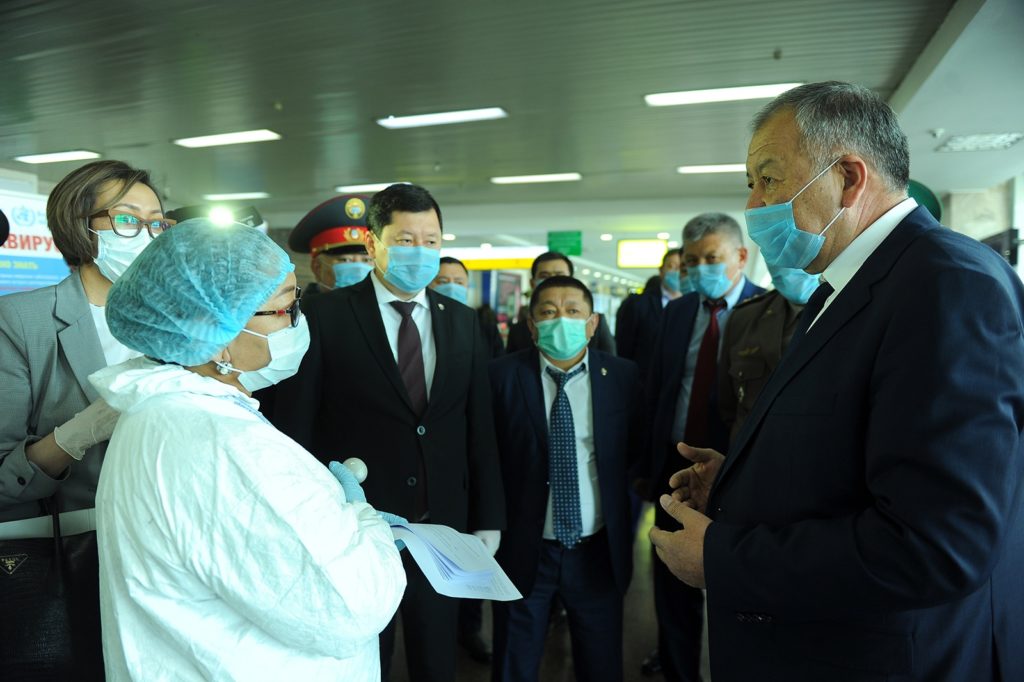 Первый вице-премьер-министр Кыргызской Республики Кубатбек Боронов посетил Международный аэропорт «Манас» и ознакомился с проводимыми проверками профильных служб в целях недопущения проникновения и распространения коронавирусной инфекции на территорию страны.