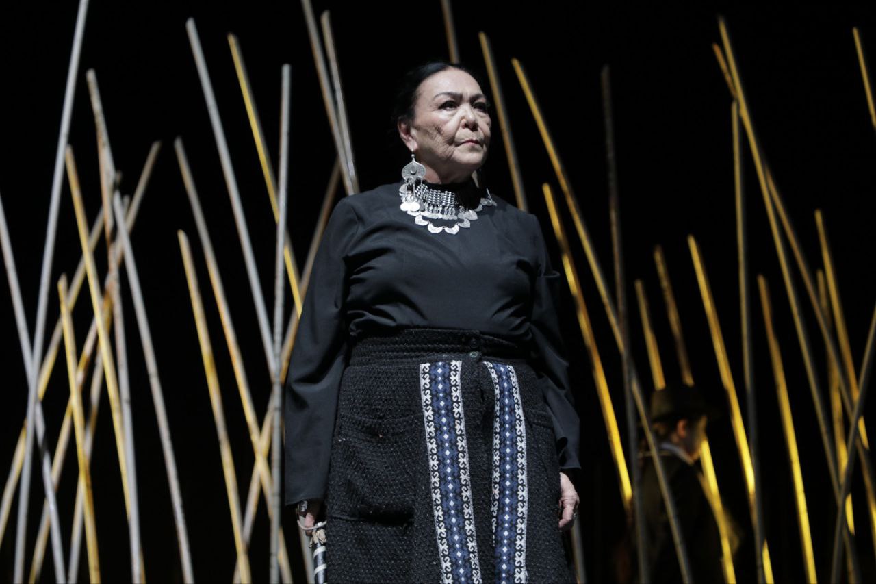 Важным пластом постановки становится хор аксакалов. Эти молчаливые фигуры, словно античный хор, то выстраиваются в стену, то замирают в рассеянном наблюдении. Они — не конкретные персонажи, а собирательный образ традиции, взгляд общества, моральная тень. В ключевые моменты их присутствие создаёт удушающее давление, усиливает трагедию главной героини. Однако в отдельных мизансценах — особенно там, где развивается личная, интимная драма, — их постоянное наблюдение кажется избыточным, нарушающим эмоциональную интимность. Возможно, более дозированное использование хора сделало бы его воздействие ещё сильнее.