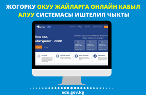 На сайте www.2020.edu.gov.kg размещены все учебные заведения Кыргызстана, факультеты и специальности. «Абитуриент Online» предоставляет возможность в режиме реального времени отслеживать процесс приема, просмотр места в рейтинге минимизирует влияние приемной комиссии образовательной организации на результаты конкурса и позволяет абитуриенту обратиться в любое образовательное учреждение по выбору.