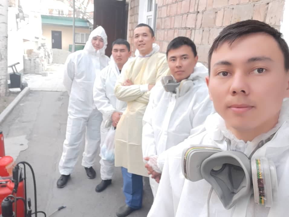 Четыре студента выпускного курса факультета медико-профилактическое дело КГМА принимают участие в дезинфекционных мероприятиях ЦГСЭН города Бишкек с начала карантина.