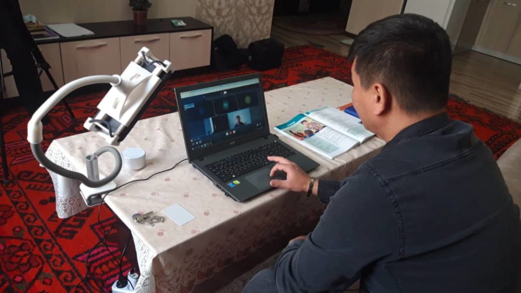 — Билим берүү жана илим министрлиги менен ректорат таблица аркылуу маалымат берүүнү талап кылып жатышат. Мугалимдердин алдында азыркы учурда эң негизги эки милдет турат. Биринчиси — КТП (календардык тематикалык план) боюнча өз убагында сапаттуу окуу материалдарын группаларга жөнөтүү. Экинчиси — жөнөтүлгөн окуу материалдарын ким окуду, берилген тапшырмаларын аткарып жатабы? Башкача айтканда студенттердин өз убагында расписание боюнча сабакка катышуусун жана берилген тапшырмаларын аткарганы боюнча сабакка жетишүүсүн көзөмөлдөө, — дейт директор.