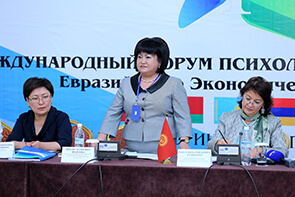 По словам президента Национального общества психологов Кыргызстана, ректора Кыргызско-российской академии образования,доктора психологических наук, профессора Ч. Шакеевой современная социально-экономическая, морально-психологическая и духовная ситуация в странах противоречива и многоаспектна. — Сложившаяся ситуация требует от государства, неправительственных организаций, общественных объединений и научных кругов принятия мер прежде всего в сфере развития системы поддержки населения и обеспечения социальной безопасности. Для аккумулирования различных программ и мнений по данным вопросам и инициировался проведение Форума, который послужил площадкой для анализа этих проблем. Цель форума — анализ психологического состояния общества и выявление основных путей разрешения социально-психологических проблем путем всестороннего обсуждения и научного разъяснения. В задачи форума входила привлечение внимания общественности и научных кругов к вопросу психологического состояния общества, его диагностика и поиск путей его эффективной регуляции; обмен опытом между участниками форума в сферах предупреждения социальных и психологических проблем, возникающих на фоне природных и техногенных катастроф, политических, экономических, криминогенных и других факторов. В итоге форума приняли проект резолюции по выработке единой стратегии развития социальной, образовательной, психологической помощи, в сфере разрешения острых социальных проблем в странах-участниц ЕАЭС. В этом контексте Форума, несомненно, приобрел значение стратегического порядка и послужил одним из путей реализации этих начинаний и дальнейшего активного участия нашей страны в евразийских интеграционных процессах. Слдеует отметить, что Форум прошел по следующим направлениям:социально-гуманитарное;политико-правовое;социально-экономическое и естественнонаучное, — рассказывает Ч.Шакеева. Кстати, в Форуме приняли участие депутаты Жогорку Кенеша, вице-премьер-министр по социальным вопросам и министры профильных министерств Кыргызской Республики, а также ведущие ученые и эксперты стран-участниц ЕАЭС – Россия, Армения, Беларусь, Казахстан, и конечно же, Кыргызстан, а также были гости из Израиля, Германиии и Японии.