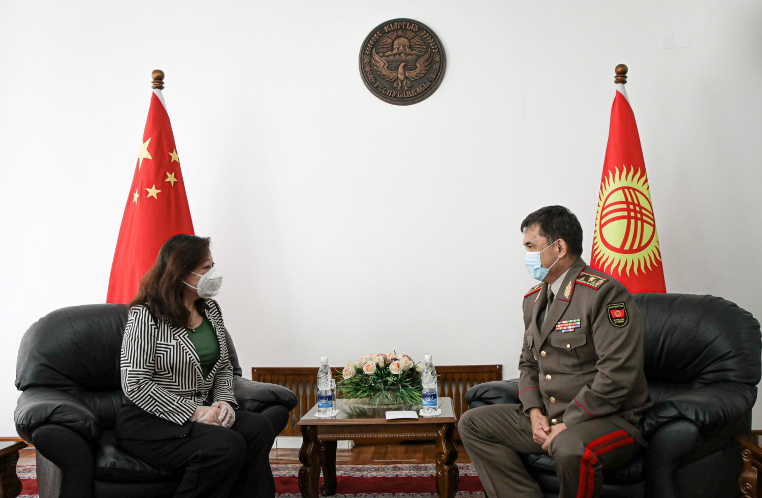6 ноября состоялась встреча начальника Генерального штаба Вооруженных Сил Кыргызской Республики генерал-майора Таалайбека Омуралиева с Чрезвычайным и Полномочным Послом Китайской Народной Республики в Кыргызской Республике госпожой Ду Дэвень.